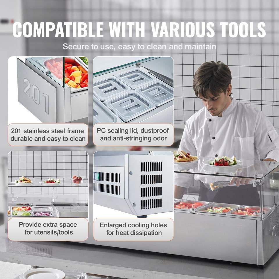 Attrezzatura di Refrigerazione per Cucine Commerciali, Stazione di Preparazione Condimenti da Banco 150 W con 4 Vaschette 1/3 e 4 Vaschette 1/6 in Acciaio Inox 304
