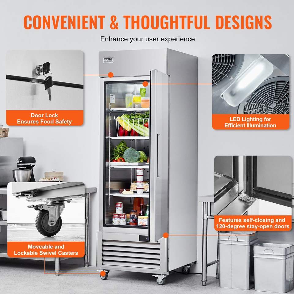 Commercial Kitchen Refrigeration Equipment 19.32 Cu.ft Reach 27\" W Upright Stainless Steel Single Door Refrigerator