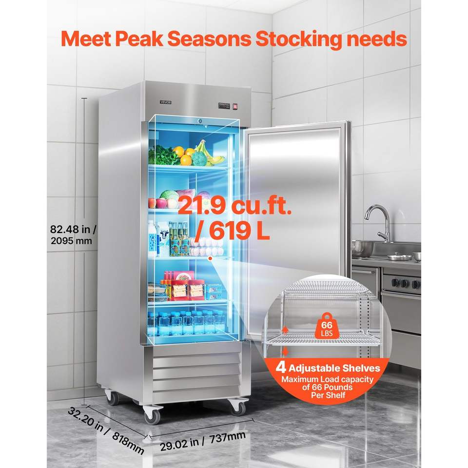 Frigorifero Verticale Professionale per Cucina Commerciale, 29 Pollici L, 22 Cu.Ft, Acciaio Inossidabile, Porta Singola, Auto-Defrost 4