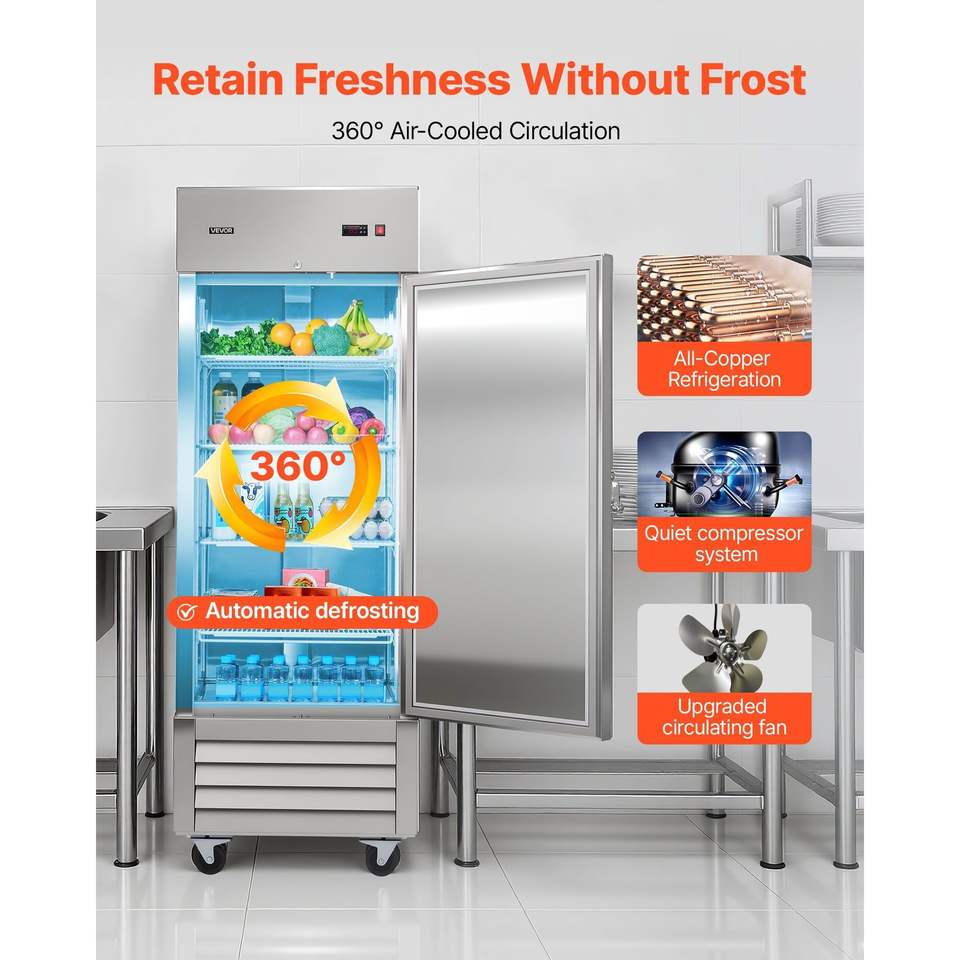 Frigorifero Verticale Professionale per Cucina Commerciale, 29 Pollici L, 22 Cu.Ft, Acciaio Inossidabile, Porta Singola, Auto-Defrost 4