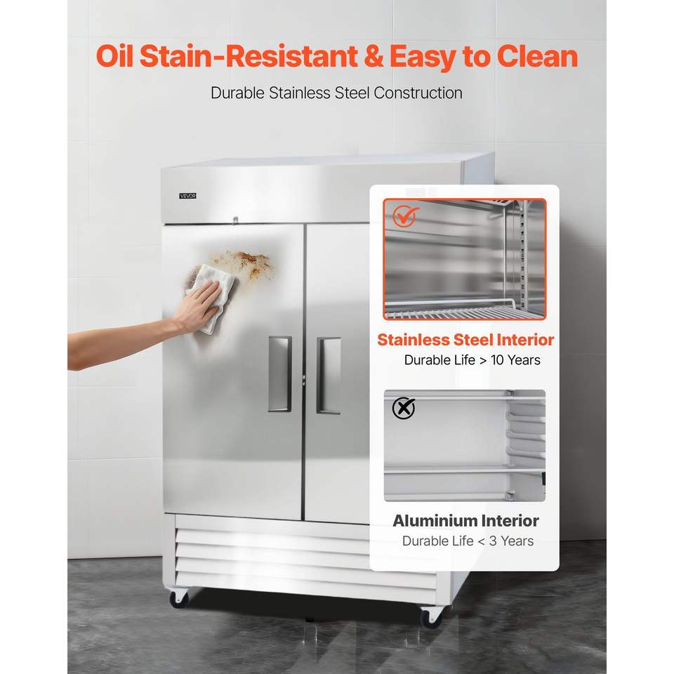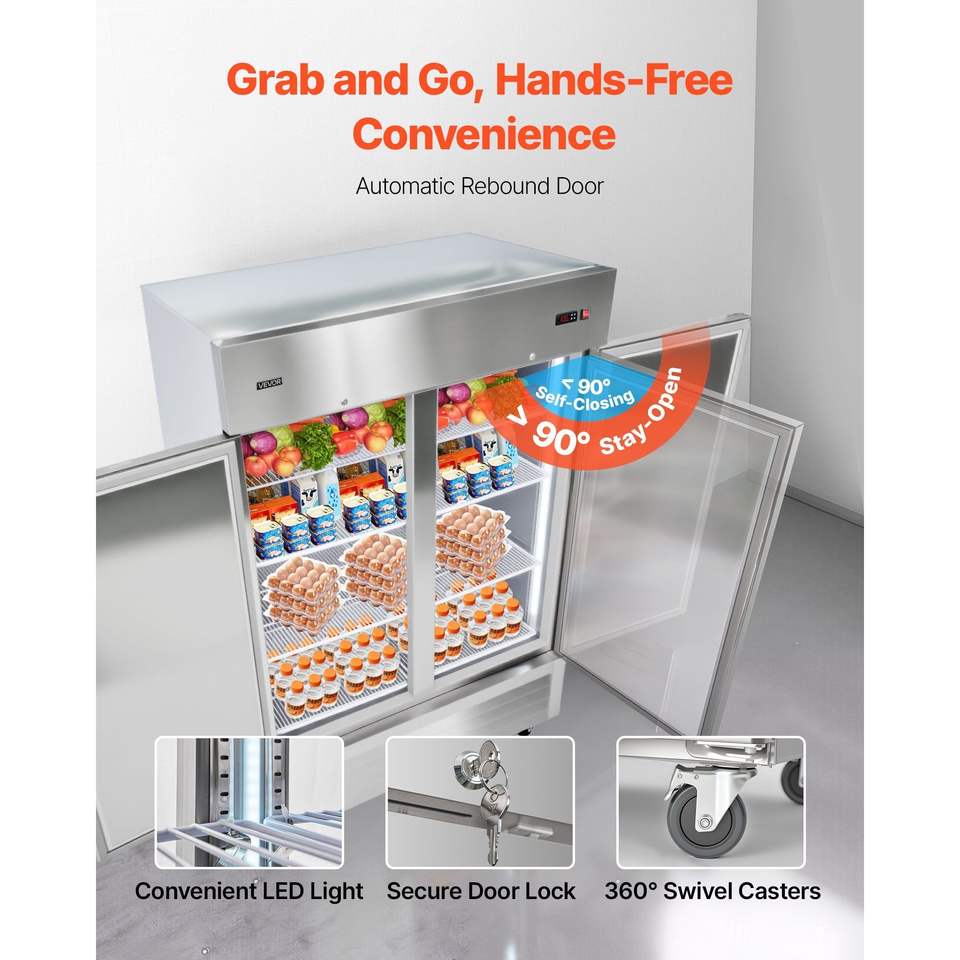 Attrezzatura di Refrigerazione per Cucine Commerciali, Frigorifero Verticale a Doppia Porta con Sbrinamento Automatico, Larghezza 32,2 Pollici, Capacità 43,2 Piedi Cubi, 8 Unità di Refrigerazione