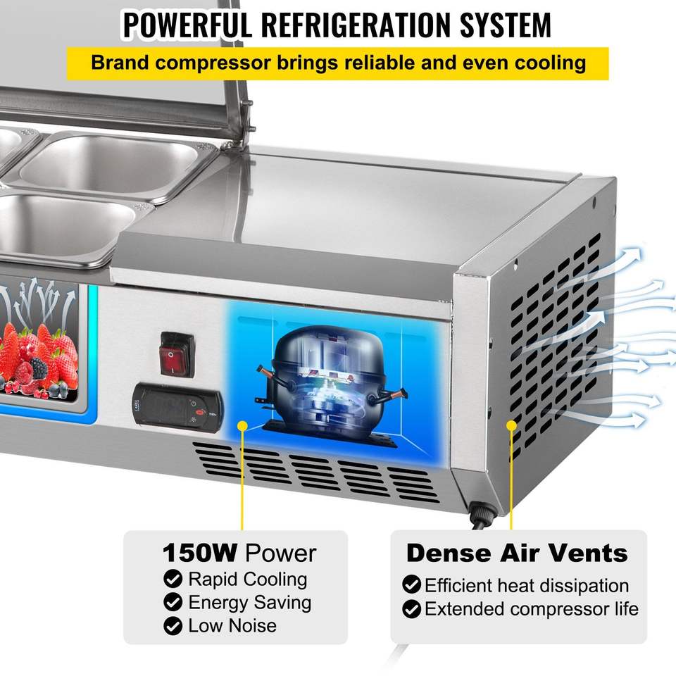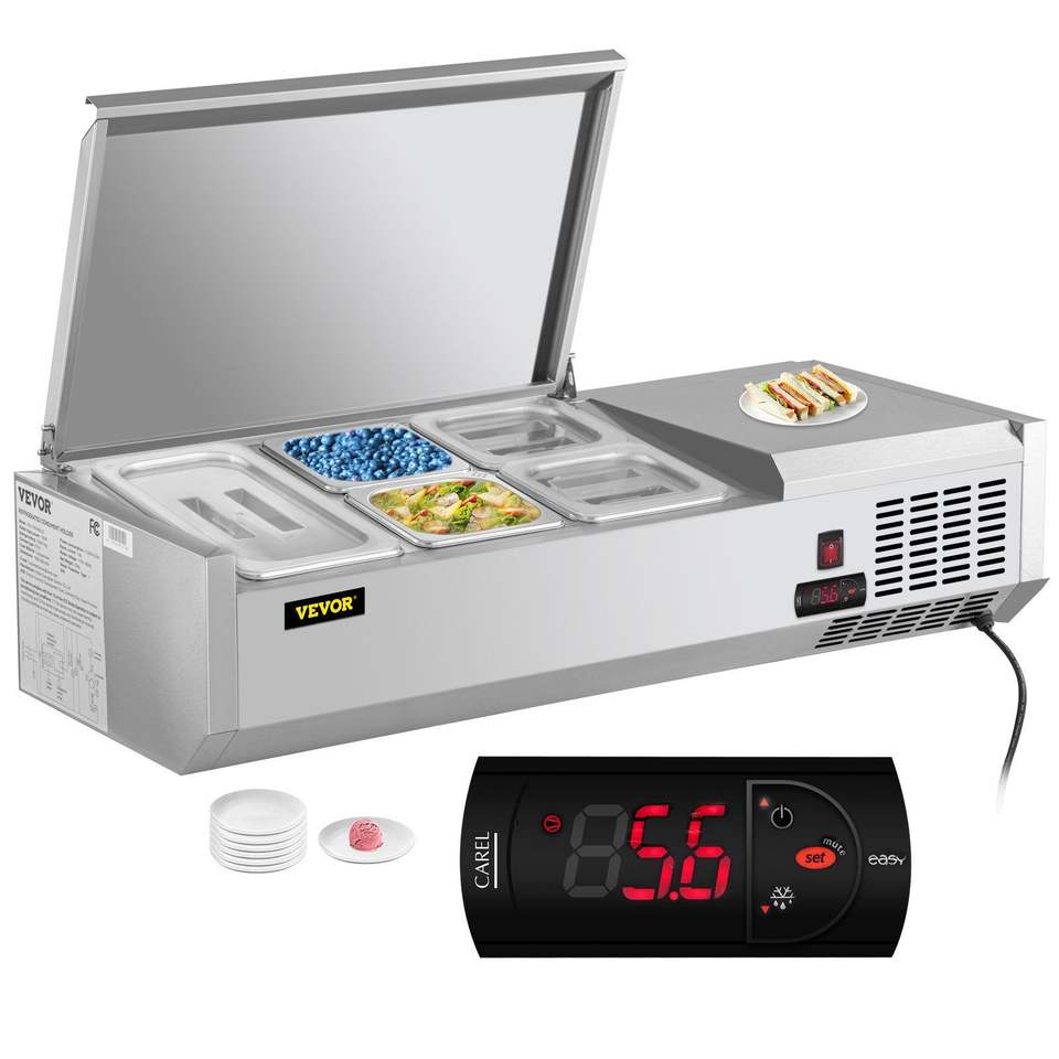 Attrezzatura di Refrigerazione per Cucine Commerciali, Stazione di Preparazione Condimenti da 40 Pollici, Tavolo per Sandwich/Insalate da 7,8 Qt, 1 Vasca 1 1/3, 4 Vasche 1/6, 150W