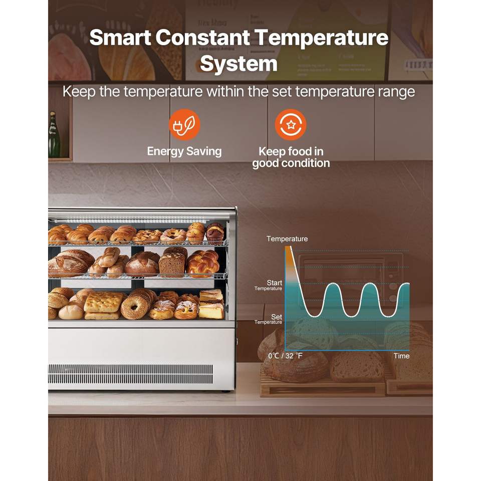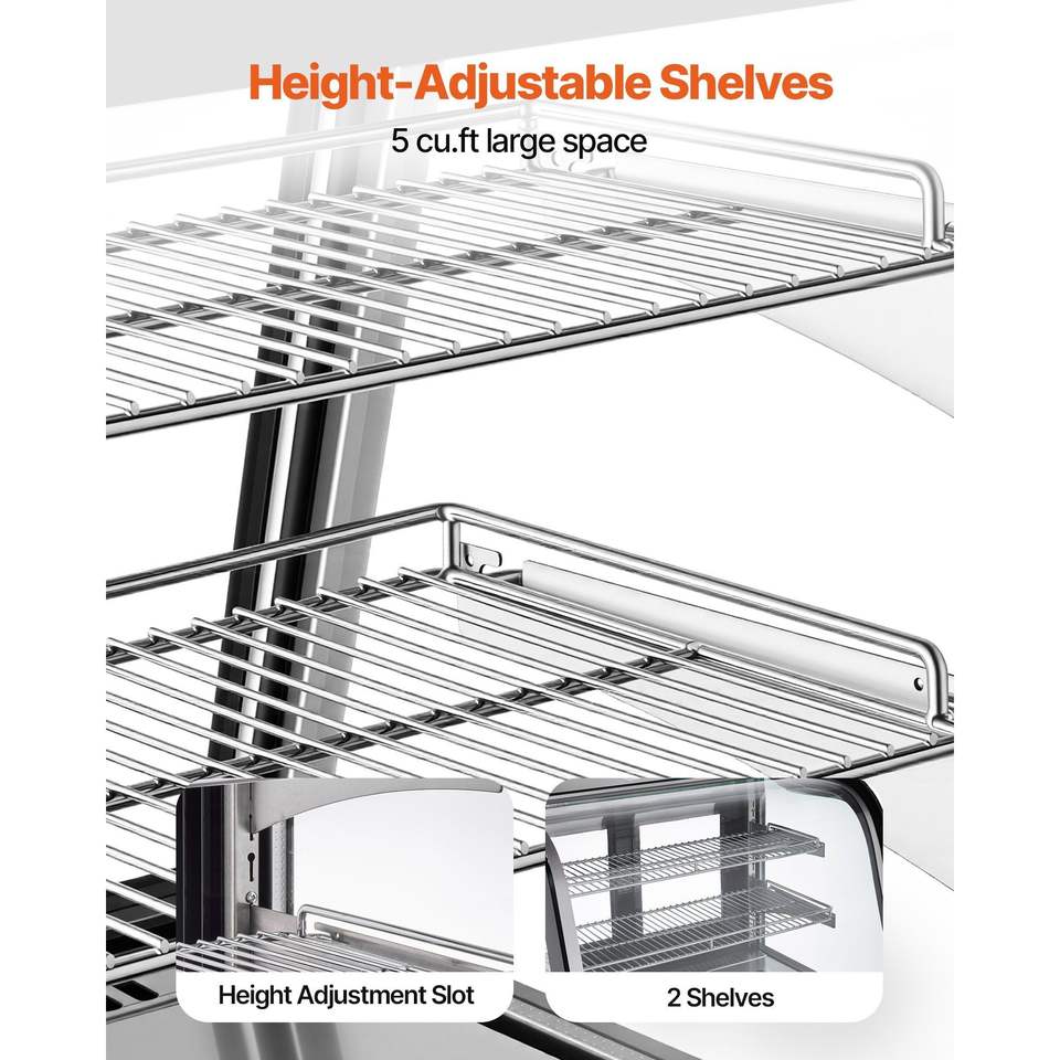 Vetrina Refrigerata da Banco per Pasticceria, 5 Cu.Ft./145L, 2 Ripiani, con Illuminazione LED, per Cucine Commerciali