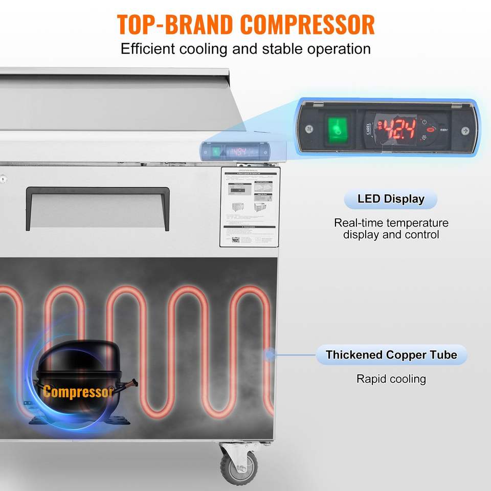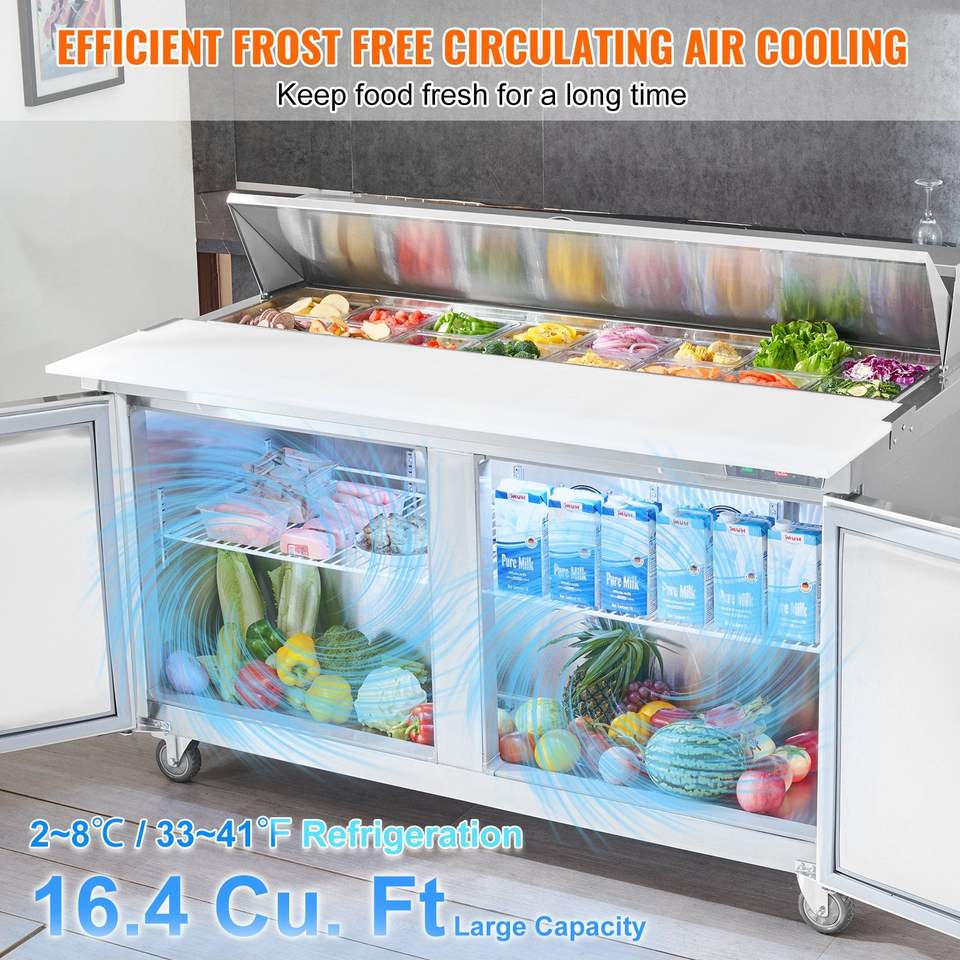 Commercial Kitchen Refrigeration Equipment 60\" Sandwich Salad Prep Table with 2 Doors and 16 Pans for Food Service Businesses