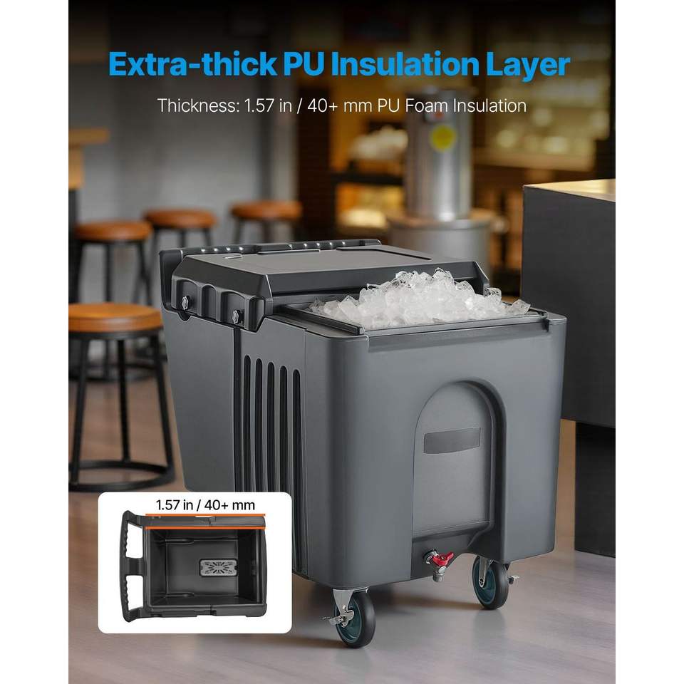 Attrezzatura di Refrigerazione per Cucine Commerciali, Carrello Portaghiaccio Portatile da 125 Libbre, 4 Ruote, 31,5 X 22,8 X 29 Pollici, Isolato, per Uso Commerciale