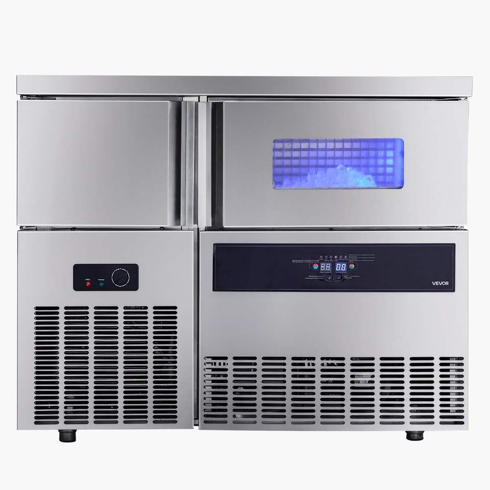 Attrezzatura di Refrigerazione per Cucine Commerciali, Macchina per il Ghiaccio in Acciaio Inox, Produzione 330 Libbre/24H, Capacità di Stoccaggio 88 Libbre, 144 Cubetti/Ciclo