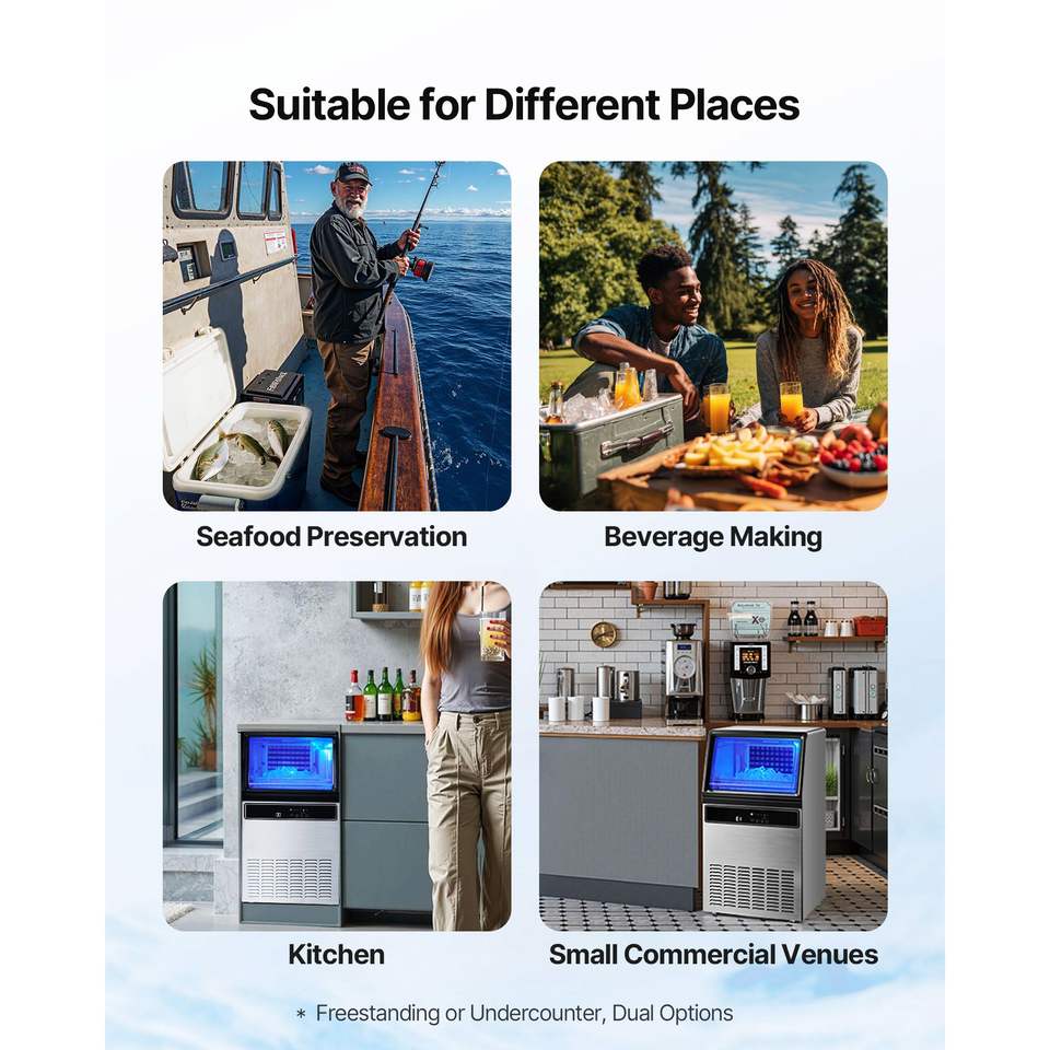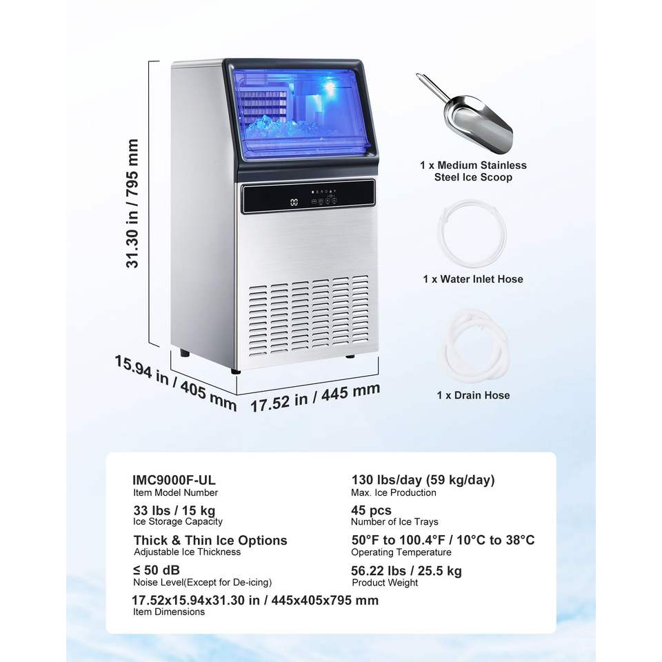 Macchina per il ghiaccio commerciale da cucina in acciaio inox, da banco, 130 libbre/24 ore, 45 cubetti per ciclo, 33 libbre