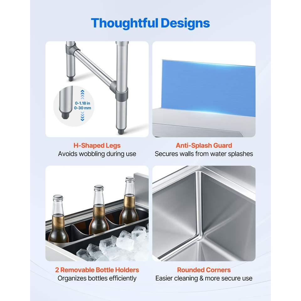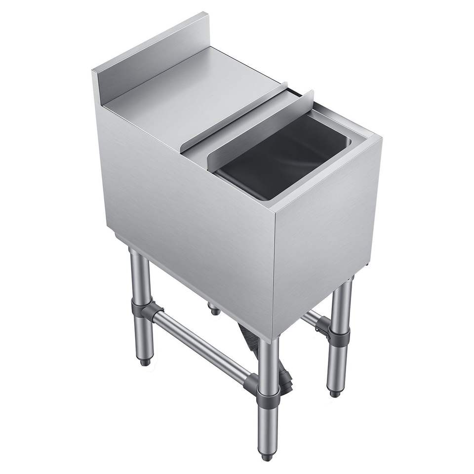 Contenitore per Ghiaccio in Acciaio Inox per Cucina Commerciale, Capacità Massima 29,6 Qt, Coperchio Scorrevole, 12 X 19 X 33 Pollici, Portabottiglie