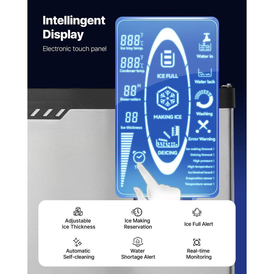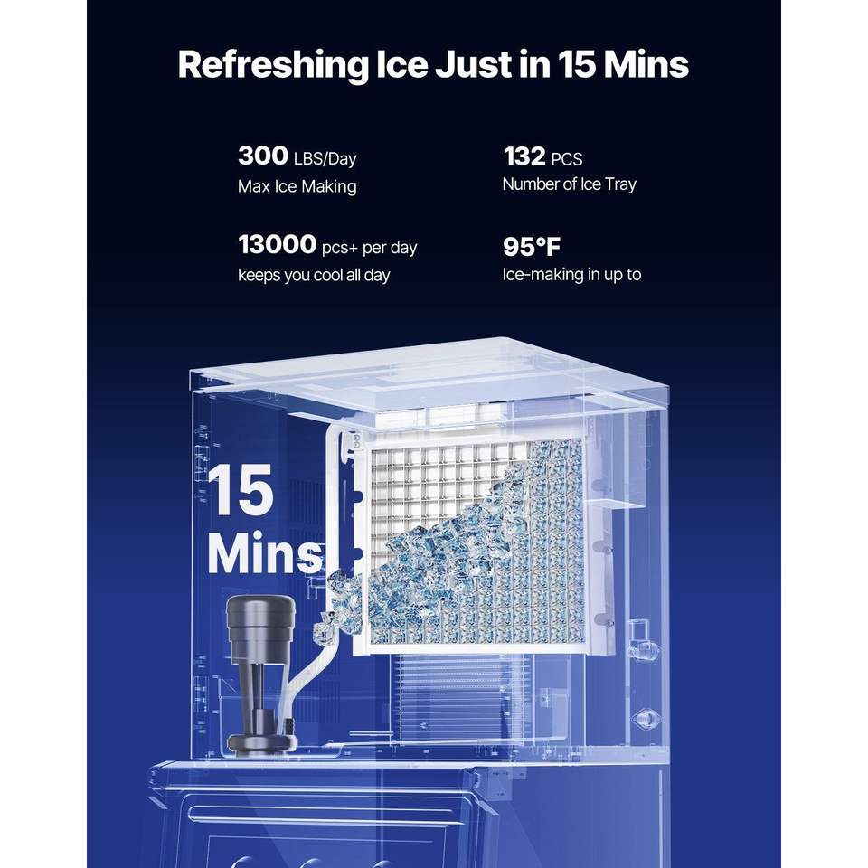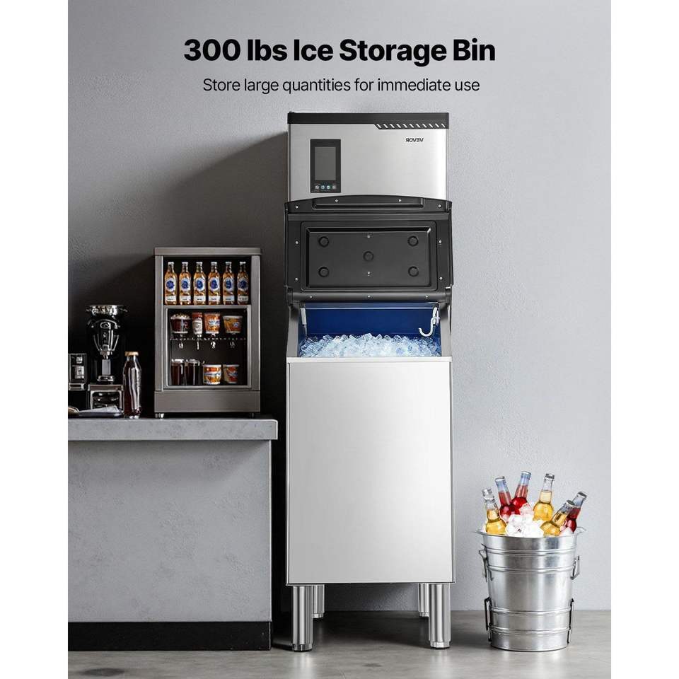 Macchina per il Ghiaccio Commerciale in Acciaio Inox con Autopulizia, Capacità 300LBS/24H, Contenitore di Stoccaggio in Acciaio Inox