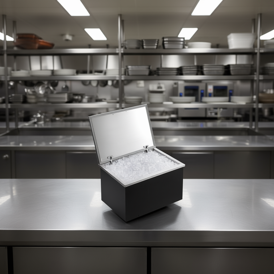 Commercial Kitchen Steel Fabrication 40 Qt Ice Cooler 28L X 20W X 17H Stainless Steel Hinged Cover Freestanding