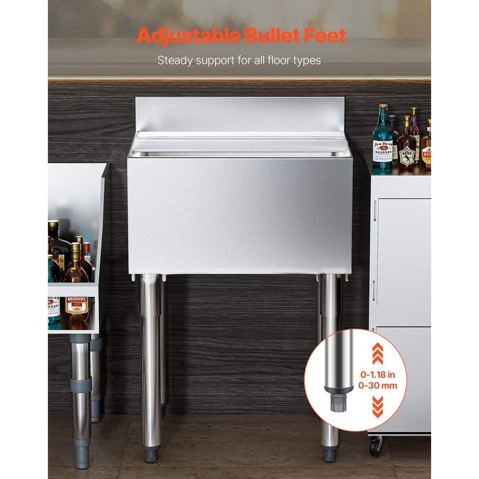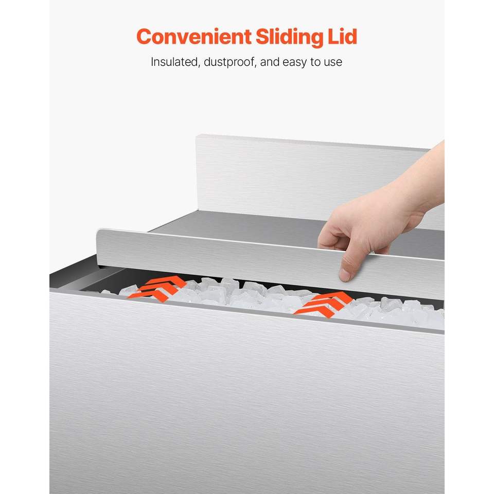 Contenitore per Ghiaccio in Acciaio Inox da 61 L per Cucine Commerciali, con Coperchio Scorrevole 24 X 19 X 37, Portabottiglie Regolabili