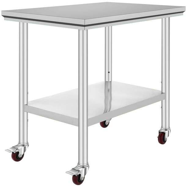 Tavolo da Lavoro per Cucina Commerciale 36x24 Pollici in Acciaio Inox con 4 Ruote, Fabbricazione in Acciaio Resistente
