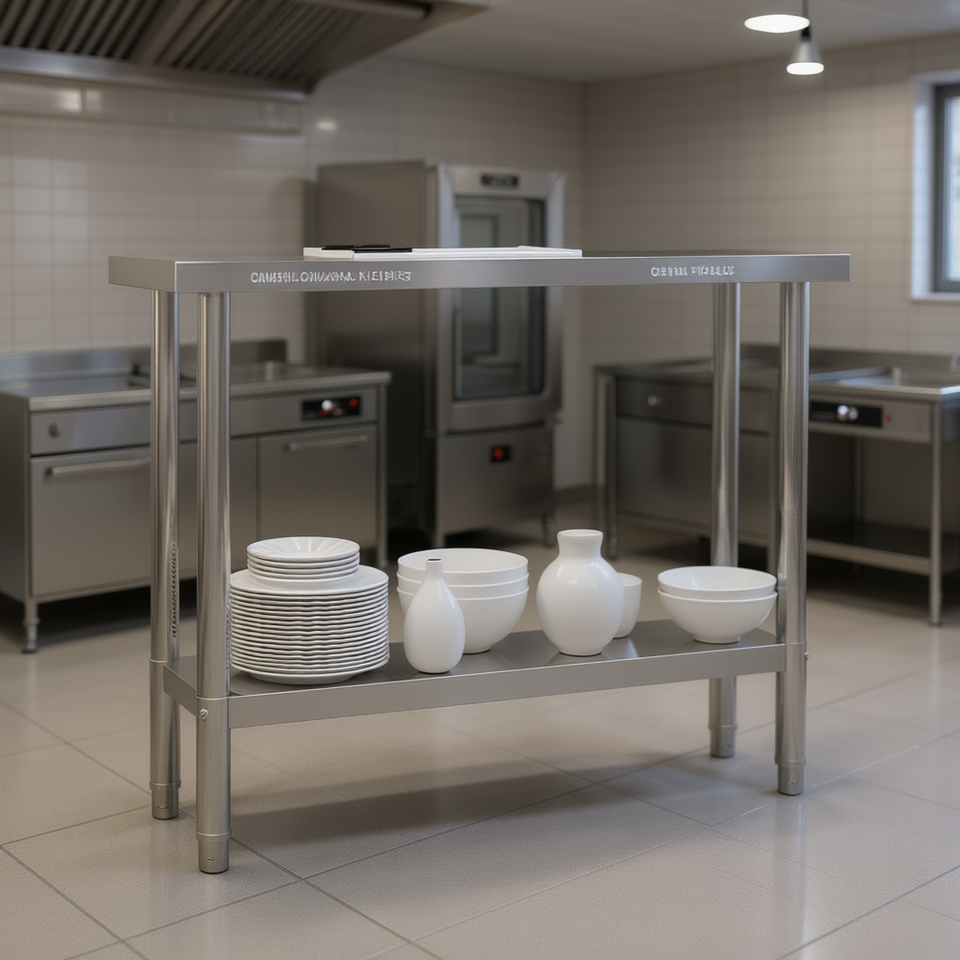 Tavolo da Lavoro per Cucina Commerciale 43.3x11.8x33.5 in Acciaio Inox Lucidato Autoportante