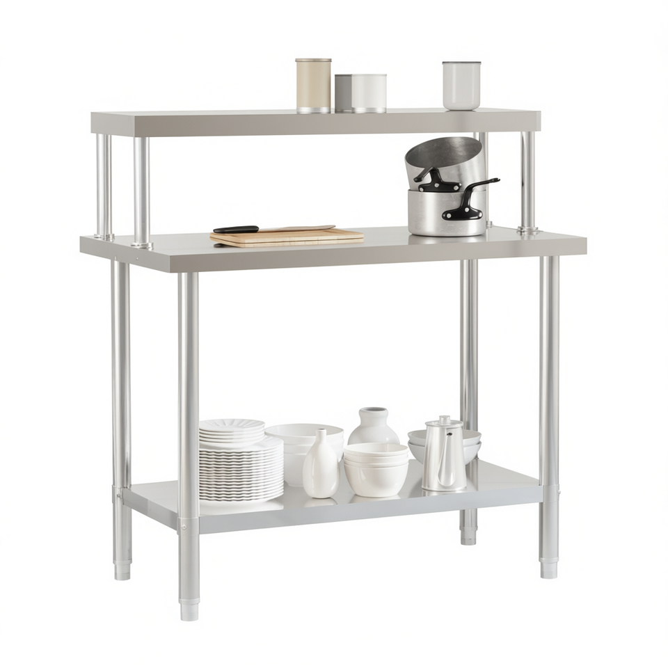 Tavolo da Lavoro per Cucina Commerciale 43.3x21.7x47.2 in Acciaio Inox con Ripiano Superiore, Finitura Lucida, Autoportante