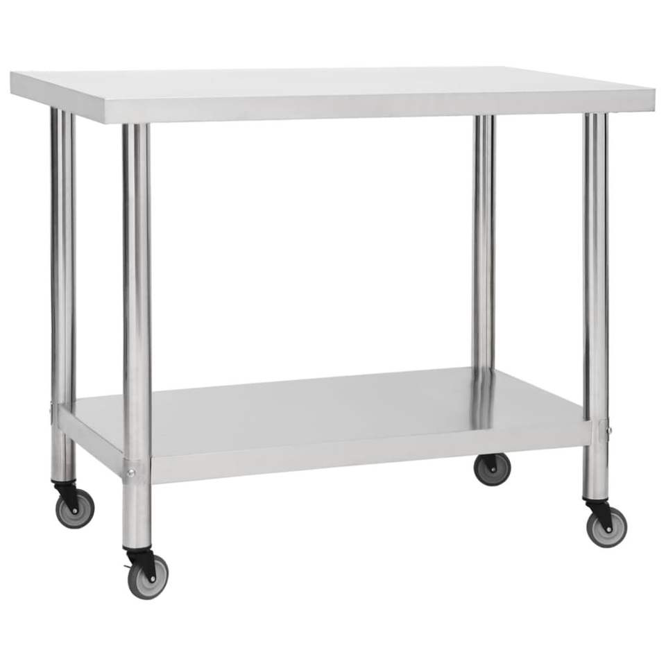 Commercial Kitchen Work Table with Wheels 39.4\"x23.6\"x33.5\" Stainless Steel Fabrication