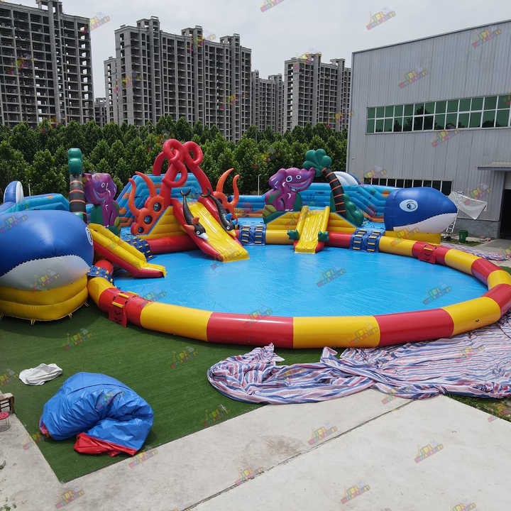 Parco acquatico a terra gonfiabile commerciale della terra Mobile con lo scivolo della piscina per gli adulti