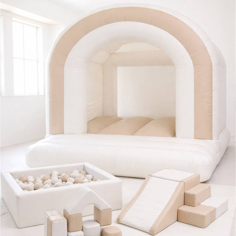 Castello Gonfiabile Commerciale in PVC Mini per Bambini Piccoli, Casa Gonfiabile Bianca per Matrimoni con Piscina di Palline e Scivolo per Noleggio