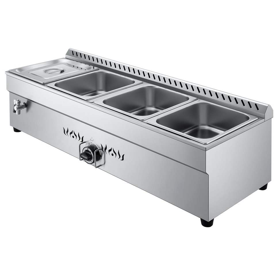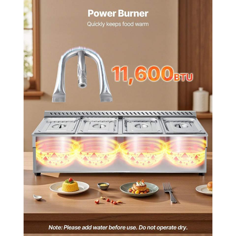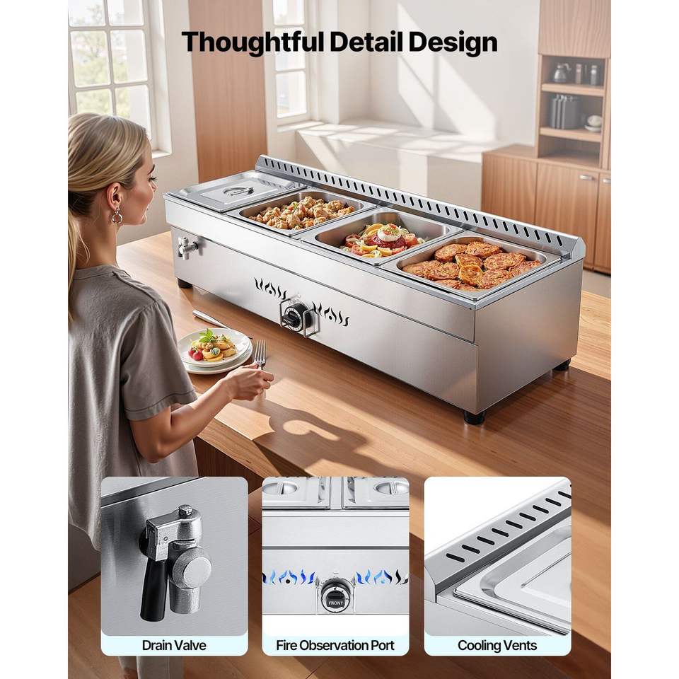 Scaldavivande Commerciale a Vapore a Gas Propano con Scaldaspezie da Esterno a Gas LP in Acciaio Inossidabile, Attrezzatura per Mantenere Caldi e Riscaldare Alimenti con 4 Vasche Regolabili