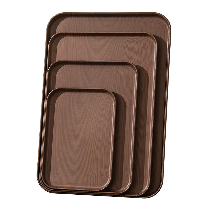Vassoio commerciale rettangolare a grana di legno PP-vassoio per alimenti grande per dolci da caffè, tè pomeridiano, prigione/pasti festivi