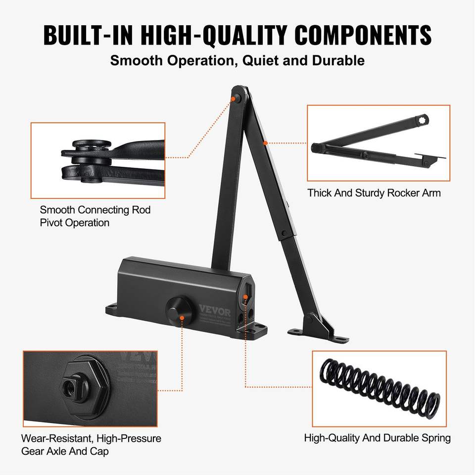 Chiudiporta Automatico Idraulico per Uso Commerciale e Residenziale, Ammortizzatore Regolabile fino a 150 Libbre, Dimensioni Regolabili