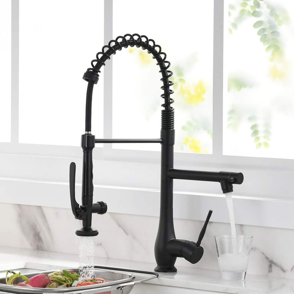 Rubinetto lavello da cucina con manico singolo commerciale con spruzzatore a discesa nero e nichel con finitura rubinetto da cucina