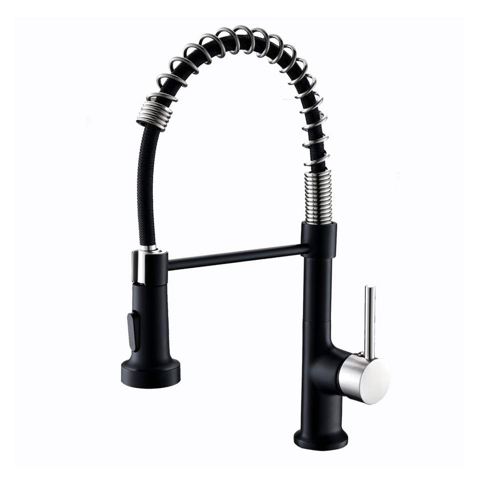 Rubinetto da Cucina Commerciale Monocomando Nero e Nichel con Doccetta Estraibile per Lavello