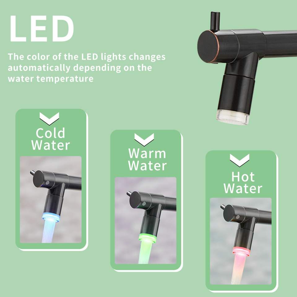 Rubinetto da Cucina Commerciale Monocomando con LED e Doccetta Estraibile per Lavello