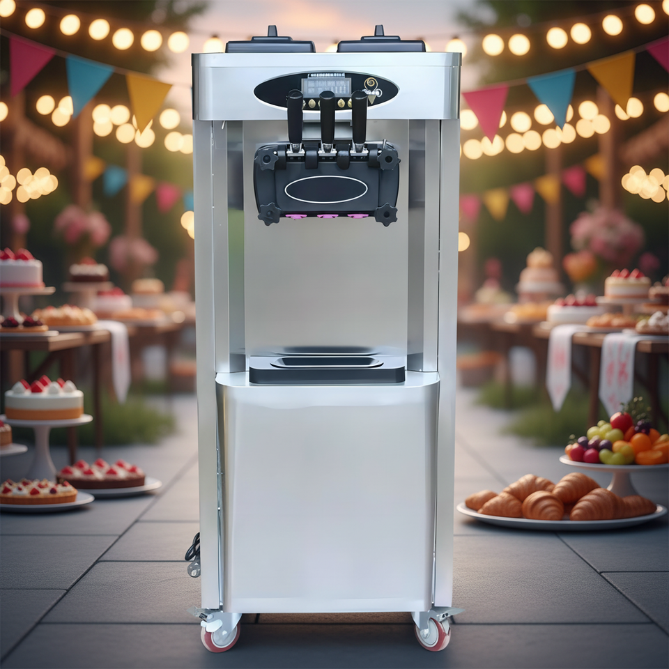 Macchina Professionale per Gelato Soft, Gelatiera Automatica a 2 Gusti con Corpo in Acciaio Inox per Ristoranti, Hotel e Negozi