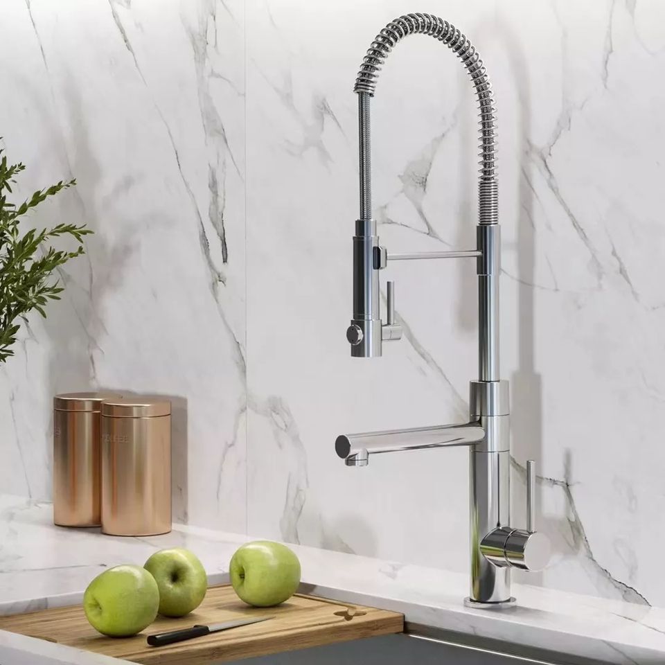 Rubinetto da cucina commerciale a molla con doccetta estraibile in ottone per lavello