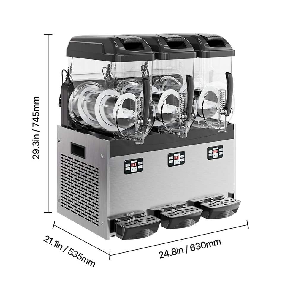 Macchina Professionale per Slushy in Acciaio Inox con Tre Vasche da 12L, 144 Bicchieri, per Margarita e Smoothie