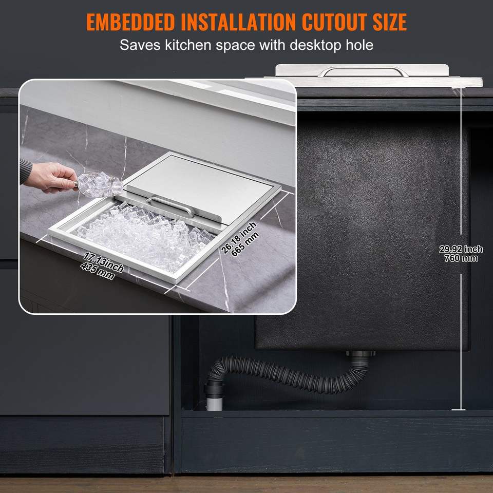 Contenitore per Ghiaccio Commerciale in Acciaio Inox da 40,9 qt, 27"L X 18"W X 21"H, Secchio per Ghiaccio da Cucina Esterna con Coperchio Scorrevole