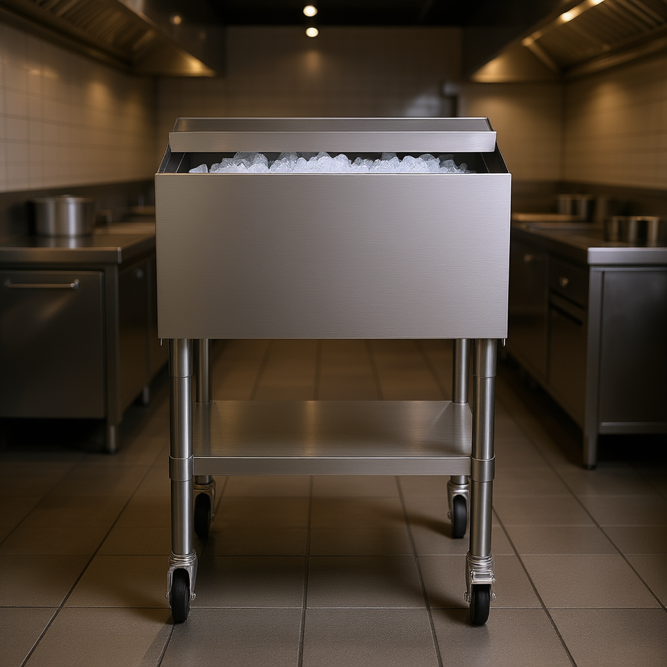 Commercial Stainless Steel Ice Bin Cooler Cart 61.6 L Rolling With Sliding Lid For Restaurant Hotel Service