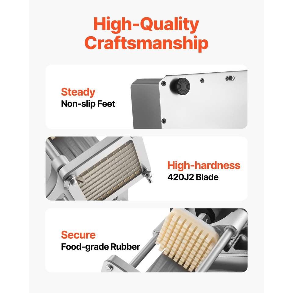 Affettatrice Commerciale in Acciaio Inossidabile per Patatine Fritte con 3 Lame di Ricambio da 1/2, 3/8 e 1/4 di Pollice per Tagliare Verdure e Frutta