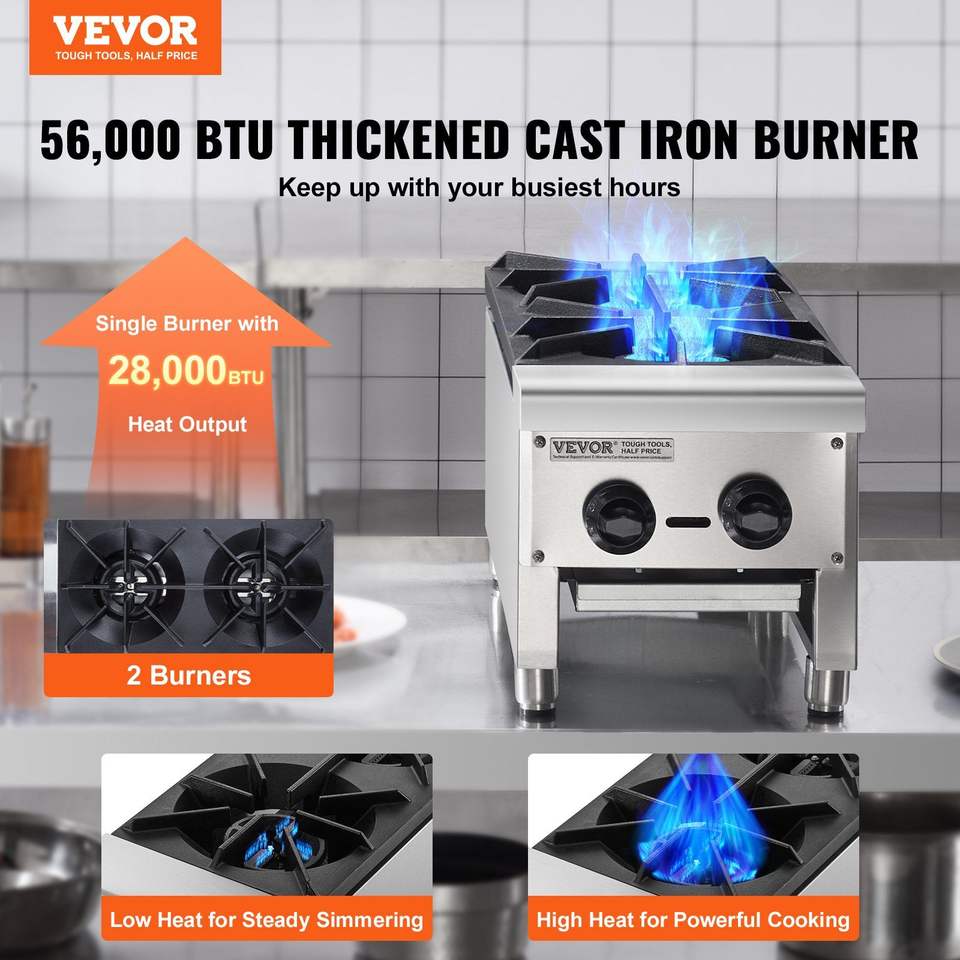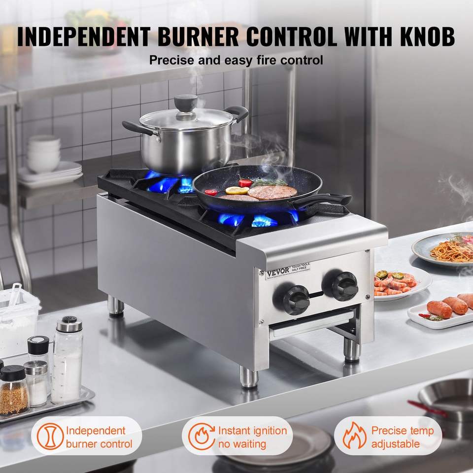 Fornello a Gas Commerciale in Acciaio Inox a 2 Fuochi, Piano Cottura da Banco, Propano/Gas Naturale, Attrezzatura da Cucina Professionale
