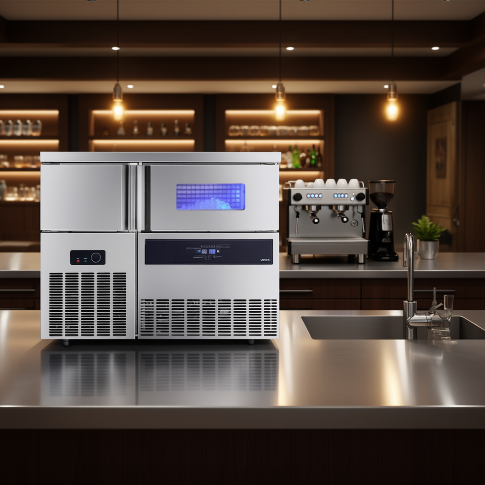 Fabbricatore di ghiaccio commerciale da 150 kg/24h con contenitore da 40 kg, autoportante in acciaio inossidabile per casa e bar