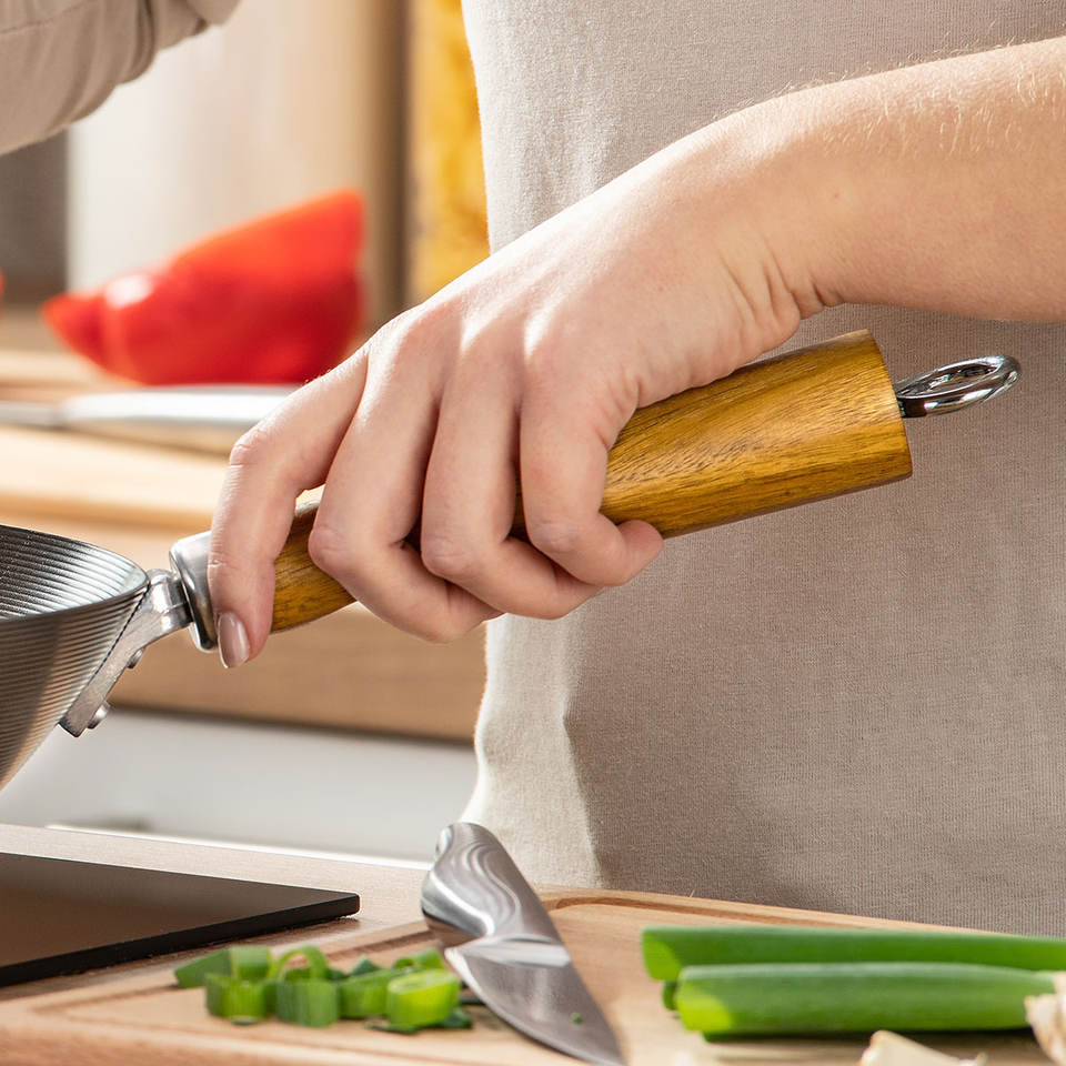 Commercial Steel Wok Pan with Wooden Handle 26cm Diameter Chinese Style Honeycomb Design for Gas Induction Cooker Glass Lid