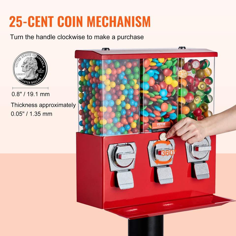 Distributore Automatico Commerciale a Tre Scomparti per Caramelle con Supporto in Ferro, Macchina per Gumball a Moneta per Attività Commerciali