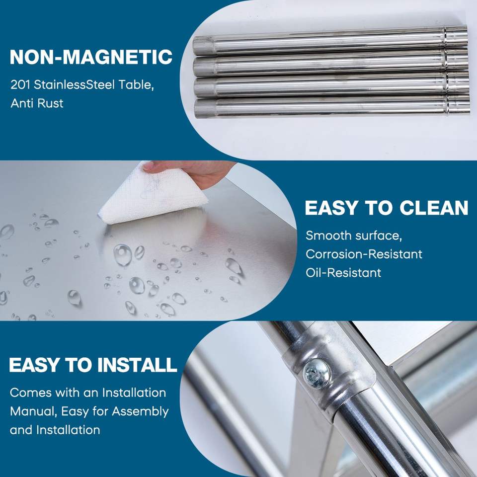 Tavolo da Lavoro Commerciale 36*24 in Acciaio Inox con Ripiano Inferiore per Ristoranti e Uso Domestico