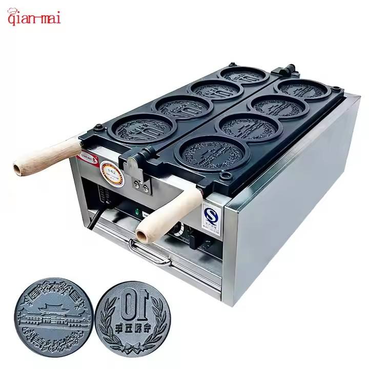 Macchina Elettrica Professionale per Waffle a Forma di Moneta Giapponese da 10 Yen con Logo Personalizzato, 4 Pezzi