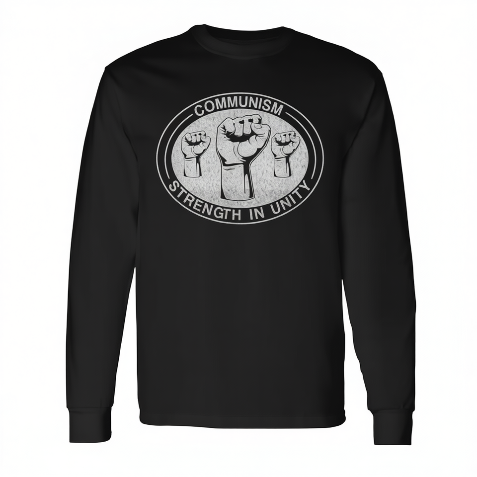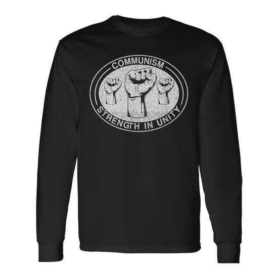 T-shirt a maniche lunghe con stampa 'Communism Strength In Unity' per il supporto al comunismo