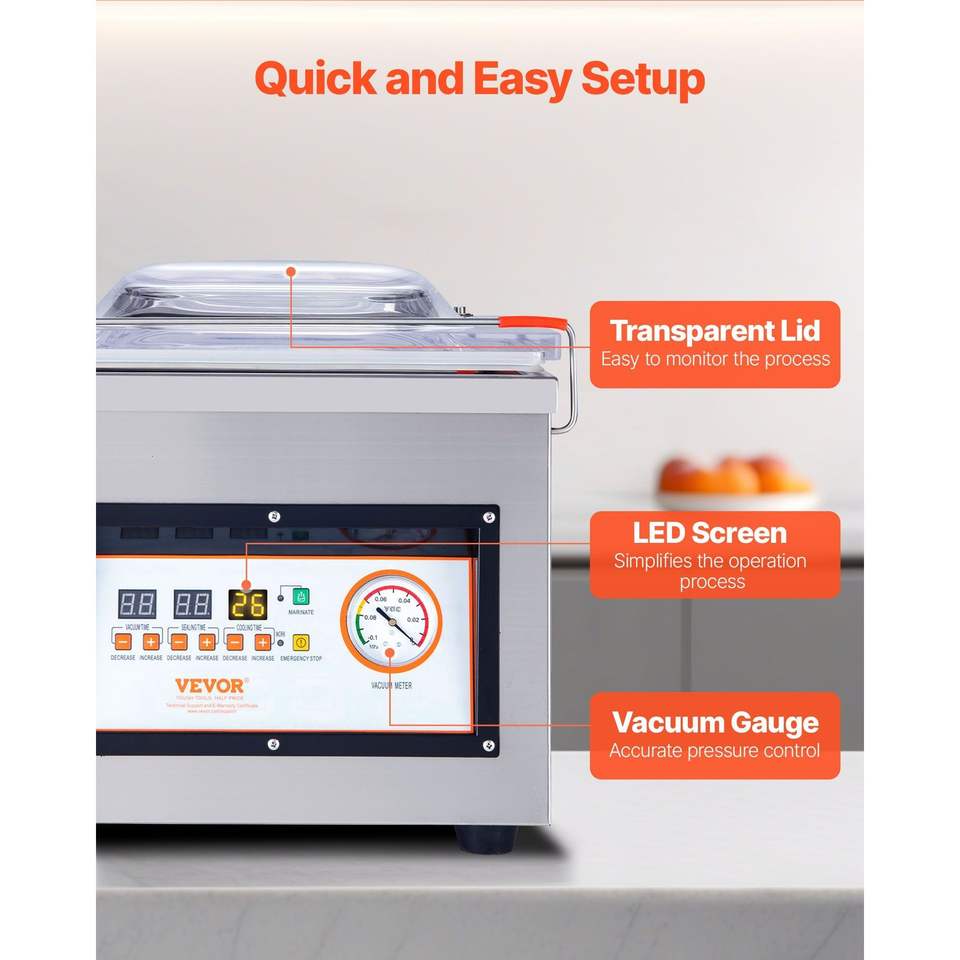 Sigillatrice Sottovuoto Compatta da 320W per Alimenti Umidi, Carni e Marinature - Efficiente Macchina per il Confezionamento Sottovuoto di Prima Generazione