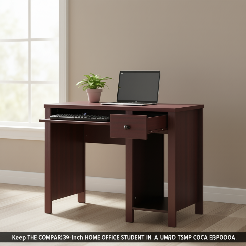 Scrivania Compatta da 39W per Casa e Ufficio con Un Cassetto e Pomello in Legno, Scrivania per Computer Portatile in Rosso Cacao Espresso