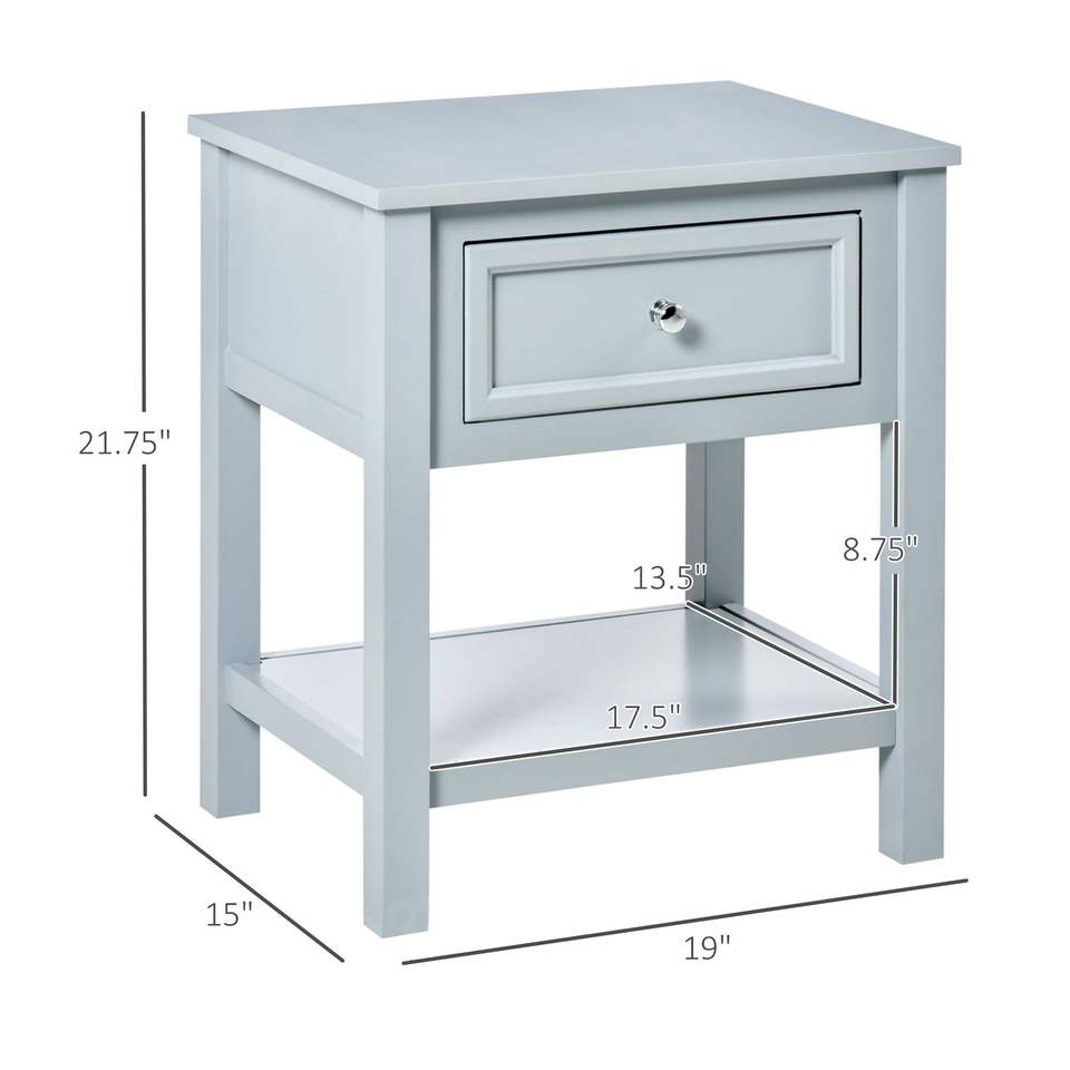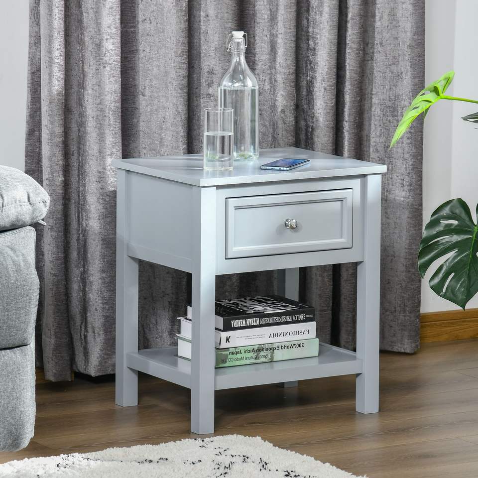 Tavolino Compatto Grigio con Cassetto e Ripiano Inferiore, Tavoli Consolle per Spazi Abitativi
