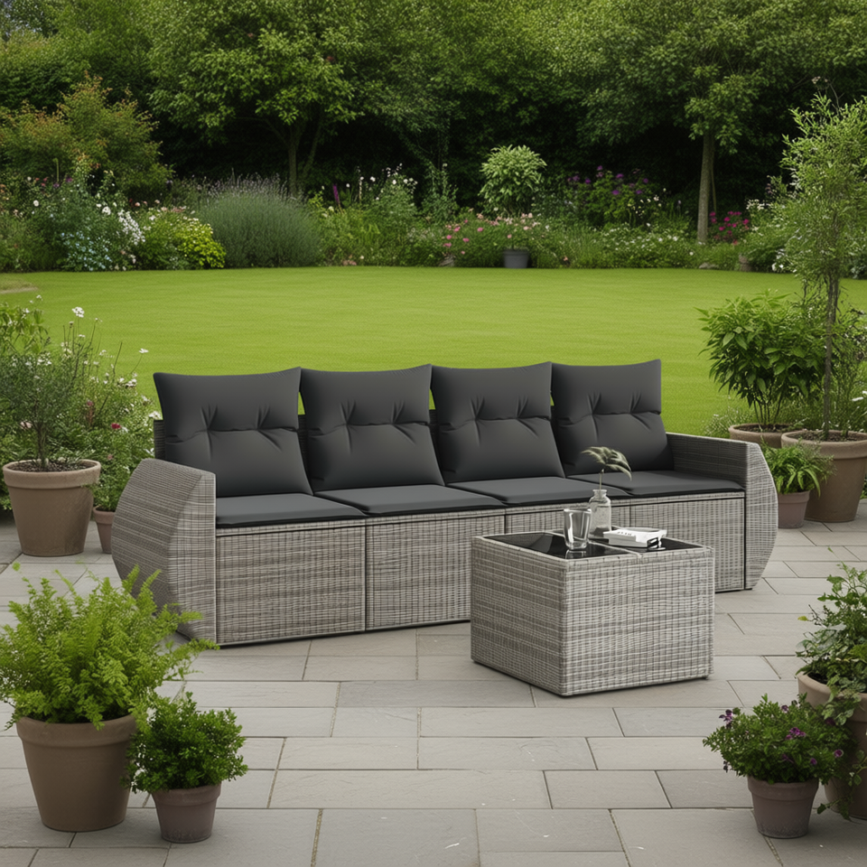 Set Divano da Giardino Modulare Compatto in Polyrattan Grigio 4 Posti Arredamento da Esterno Design Contemporaneo