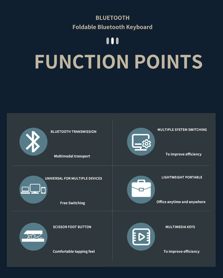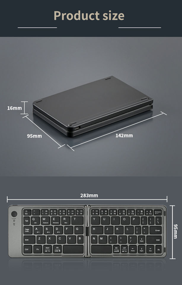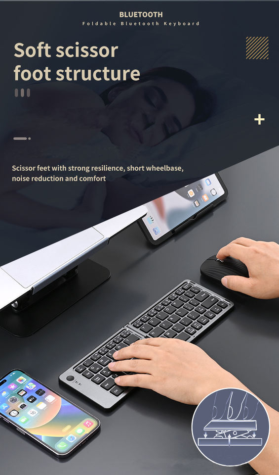 Tastiera Wireless Ricaricabile Compatta e Pieghevole, Tastiere da Viaggio Tascabili per iPad, iPhone, Smartphone, Tablet e Laptop