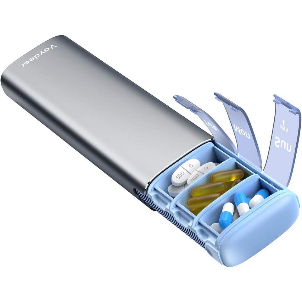 Organizzatore settimanale compatto per pillole, portatile, piccolo, in metallo, per farmaci e vitamine, custodia efficiente per pillole da viaggio