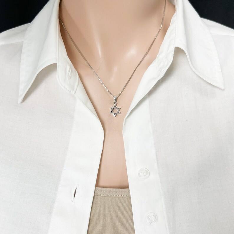 Collana Compatta ed Elegante con Stella di David in Argento Puro, Placcata in Oro 18k, Gioielli Ebraici in Acciaio Inossidabile, Ciondolo Stella di David