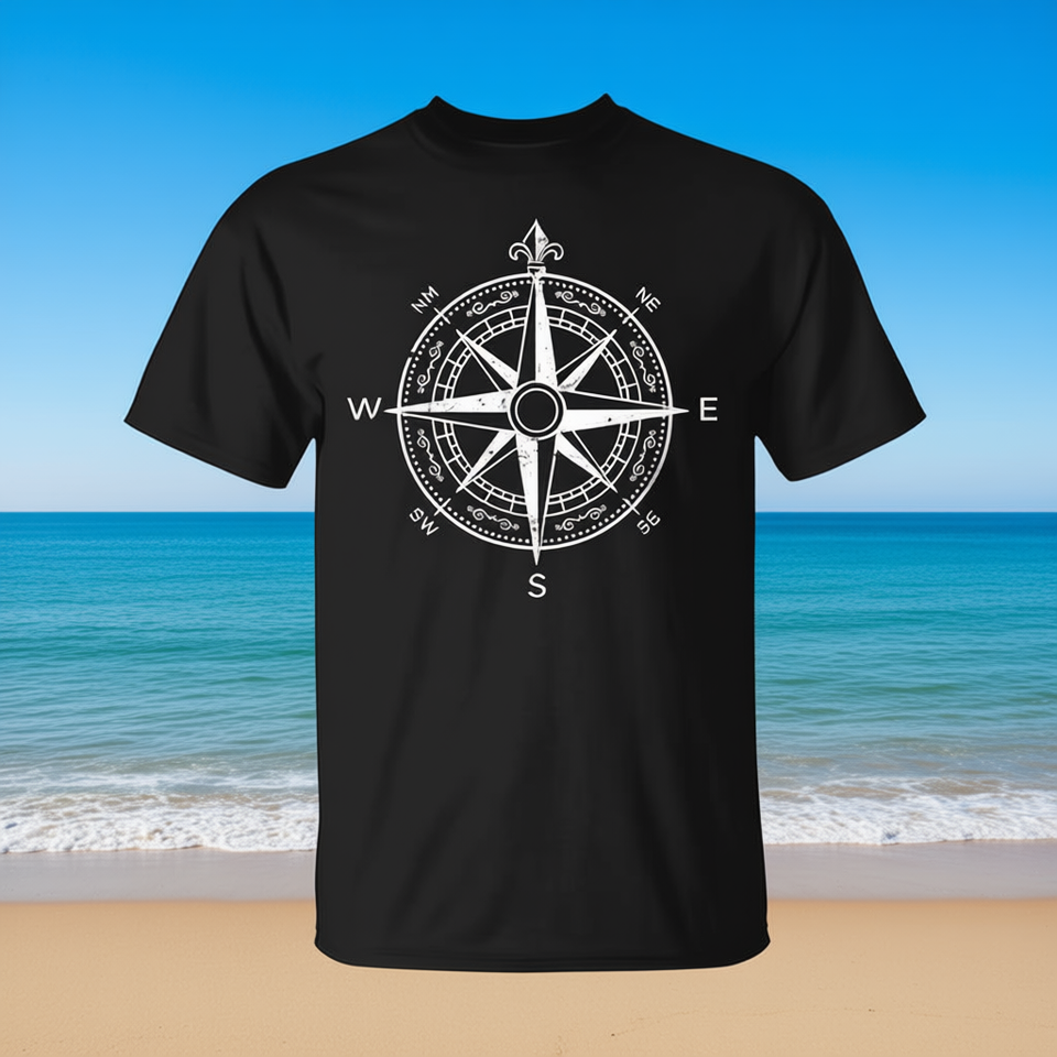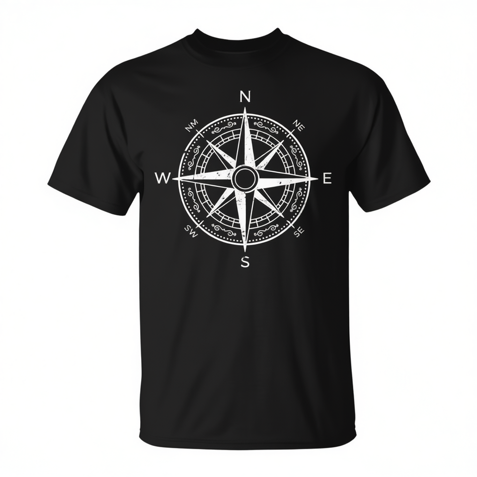 T-shirt Compass Sailing Nera Unisex Taglia Adulto M L XL XXL