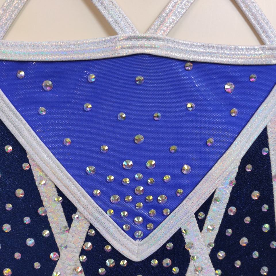 Competizione Custom Design allegria uniforme blu reale profondo con cristallo lucido per gruppi di danza Varsity