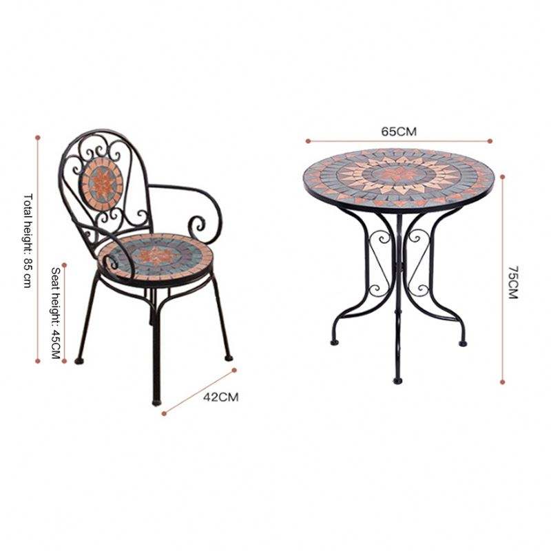 Competitive Pricemodern Outdoor Iron Furniture Dining Room Furniture Chairs Iron Craft Outdoor Bistro Set Mosaic Table Outdoor